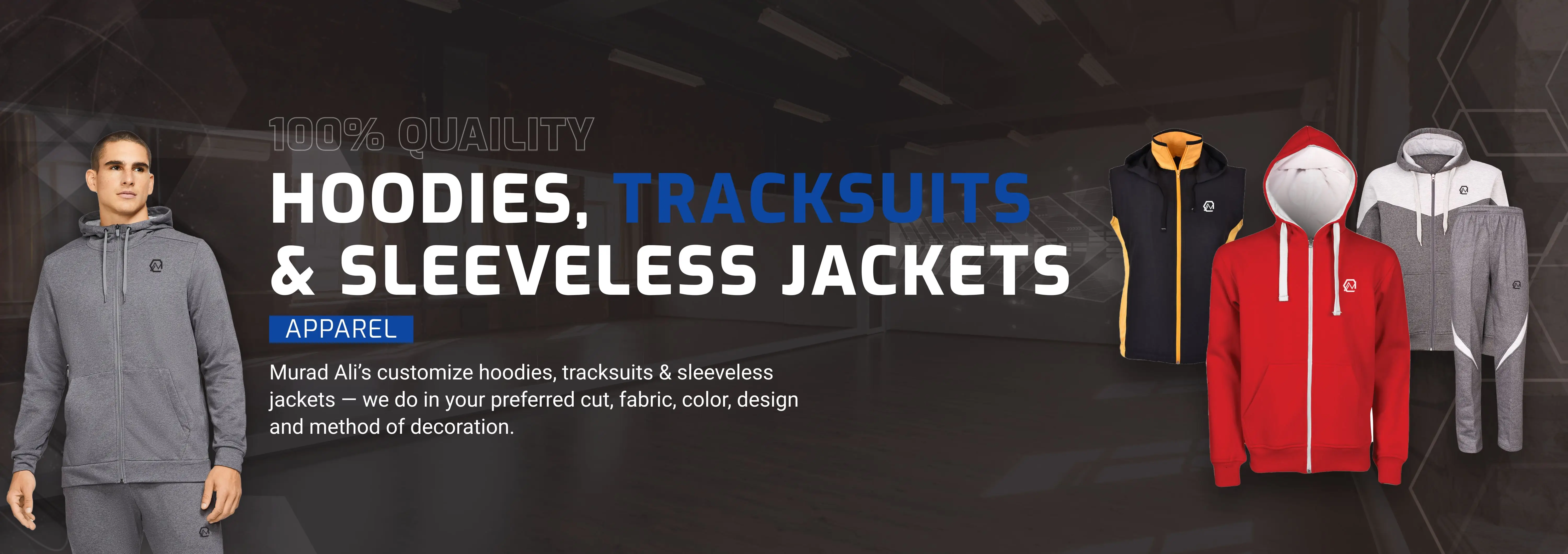 Your premier destination for high-quality sports apparels. As a leading sports wear manufacturing company, we are dedicated to outfitting athletes and sports enthusiasts with the finest performance-driven clothing and equipment. Whether you're a professional athlete, a weekend warrior, or just someone who loves to stay active, Murad Ali has you covered. From cutting-edge sportswear to innovative accessories and equipment, we offer a comprehensive range of products to cater to all your sporting needs.
